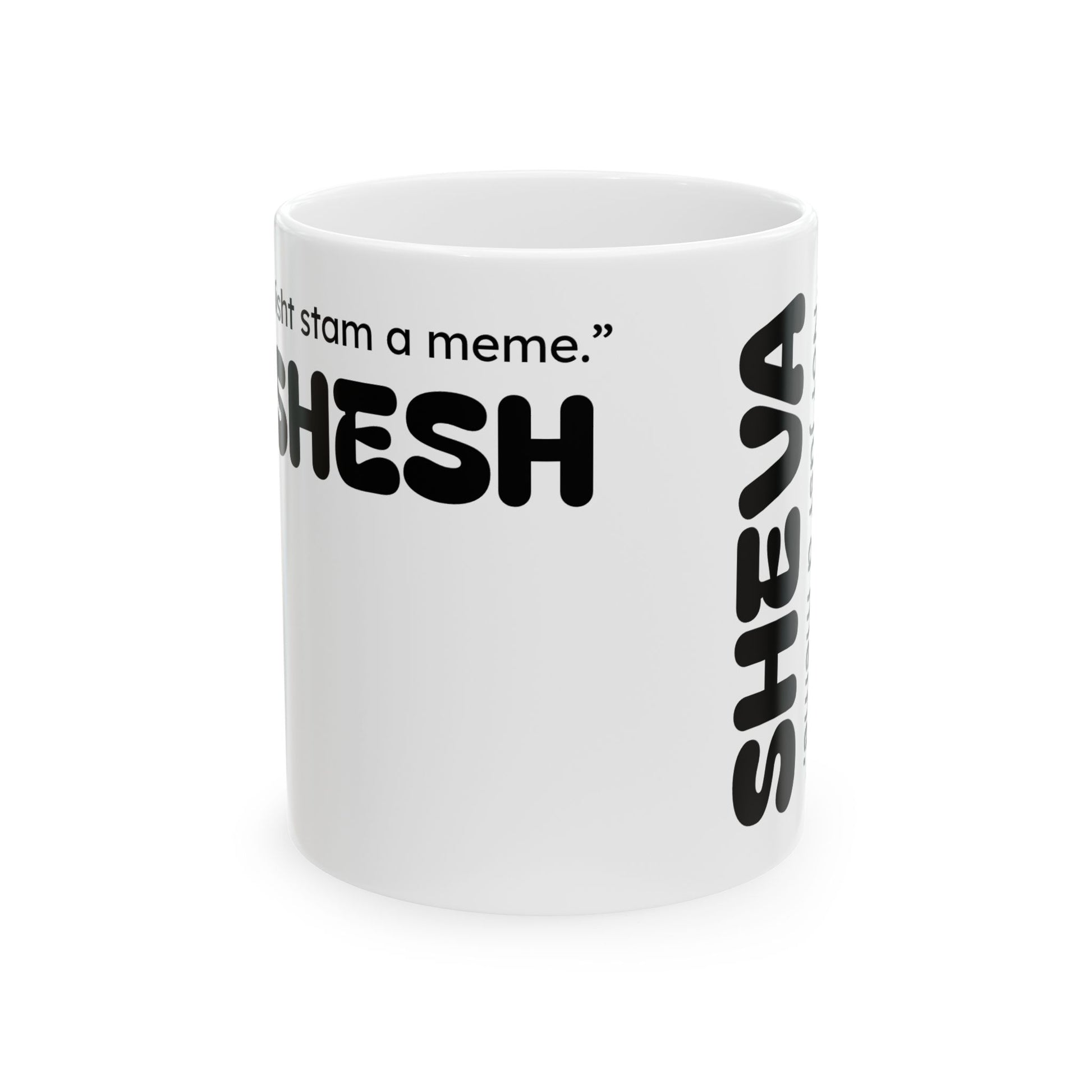 The SHESH SHEVA ceramic mug is a stylish addition to your daily routine, perfect for Gen-Z and TikTok enthusiasts. With a glossy finish and vibrant colors, this mug combines Israeli originality with global meme energy. Microwave and dishwasher safe, this mug is durable and comfortable to use. Ideal for those looking to add a touch of spiritual balance and statement vibes to their morning coffee or tea routine. Relevant for birthdays, holidays, or any occasion where a trendy and unique gift is appreciated.